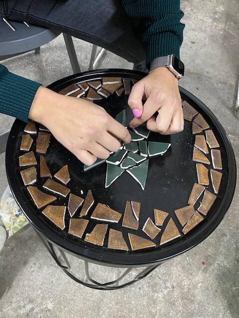 De workshop mozaïeken bestaat altijd uit minimaal twee dagdelen. Dit omdat je na het drogen van de tegellijm je eigen werk nog gaat voegen.