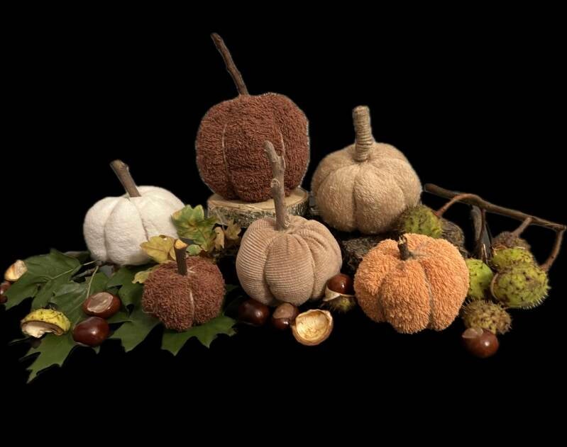 We maken mooie zachte wollige/fluffy decoratieve pompoenen. Per persoon maak je er 3. Keuze uit verschillende kleuren en maten. Bv heel leuk voor op een herfst tafel.