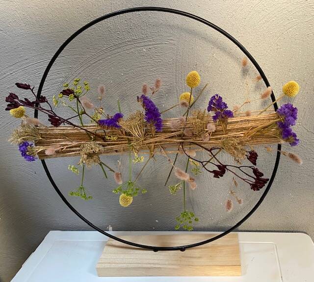 Deze prachtige creatie kan in vele kleuren worden gemaakt. Door het gebruik van droogbloemen kun je het heel lang bewaren en eindeloos van genieten.